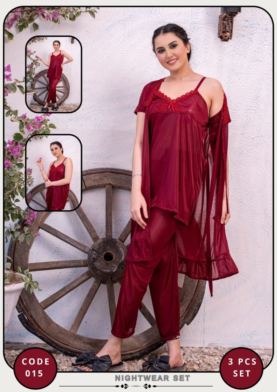 Premium 3-Piece Bridal Nightwear Set – Soft Jersey See-Through Gown, Inner Camisole, & Matching Trousers